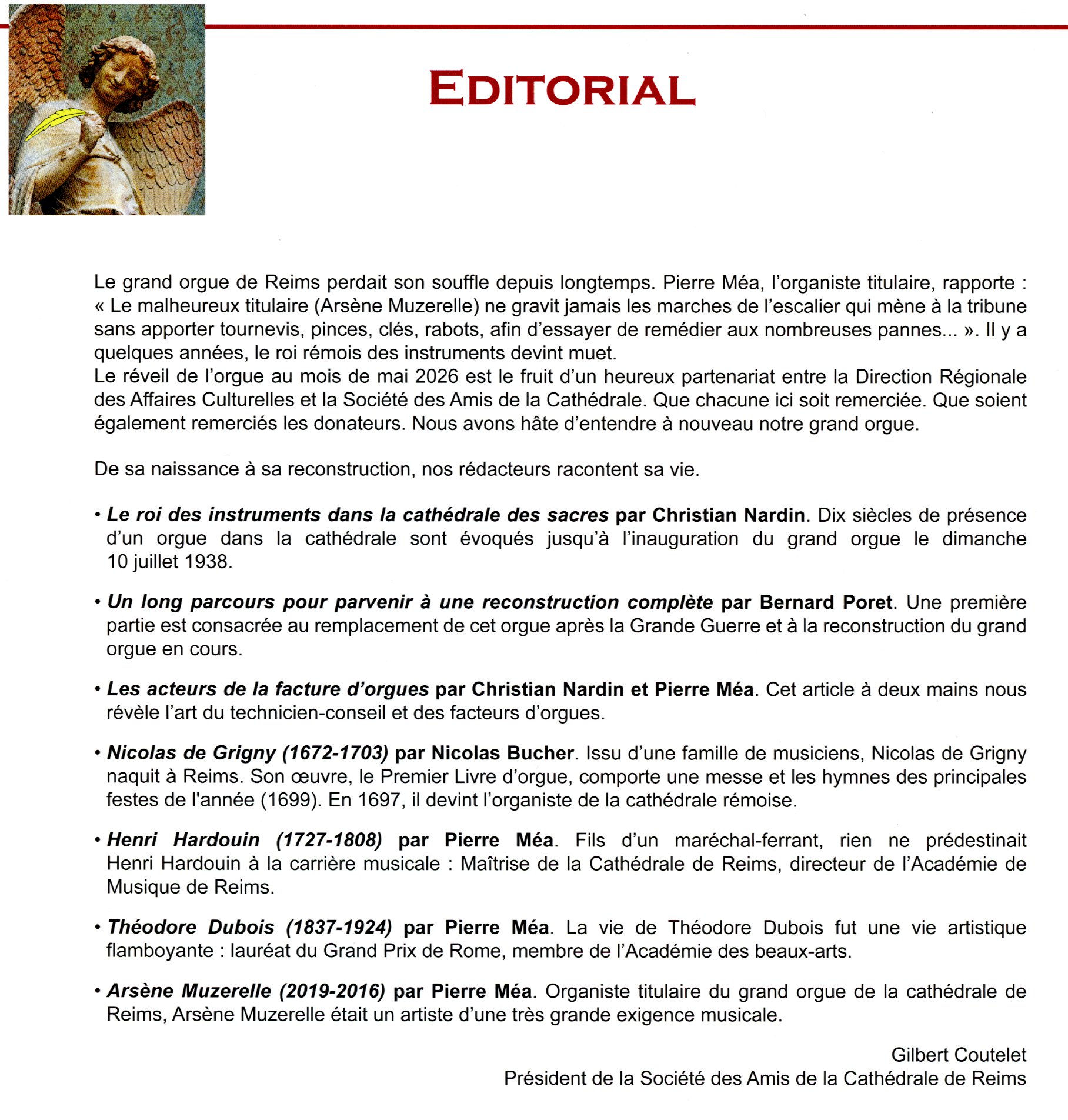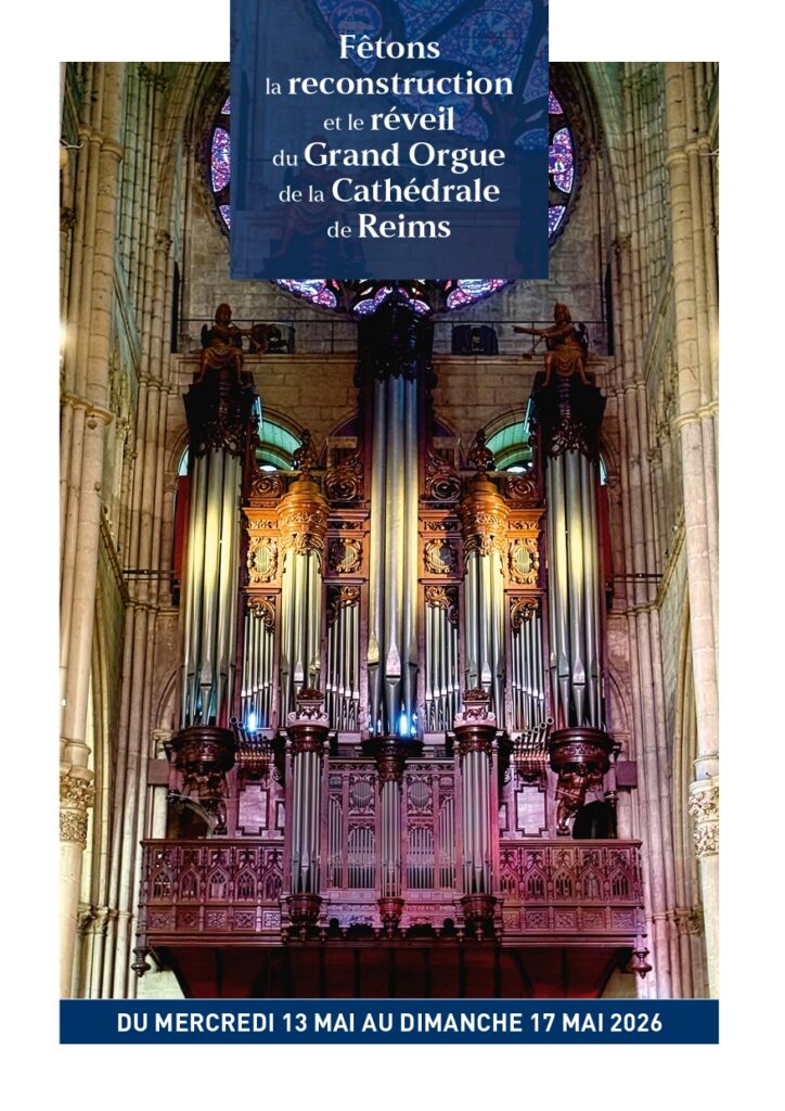 Programme des manifestations de l’inauguration de la reconstruction du Grand Orgue de la Cathédrale de Reims qui aura lieu du 13 au dimanche 17 mai 2026