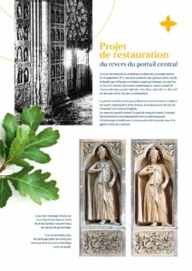 Maintenant, il importe de nettoyer et restaurer la partie basse du revers pour retrouver une harmonie de l’ensemble et permettre une lecture facile et agréable de toutes les niches de feuillages et de personnages qui entourent la porte centrale et la petite rose.