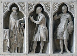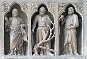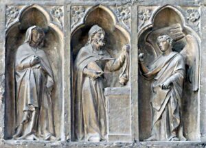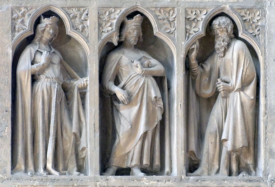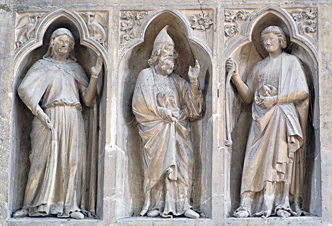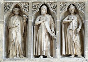 Deux prophètes et un roi couronné. Le roi couronné à droite est peut-être le roi David.