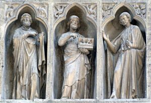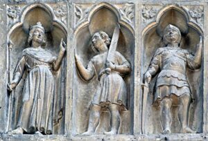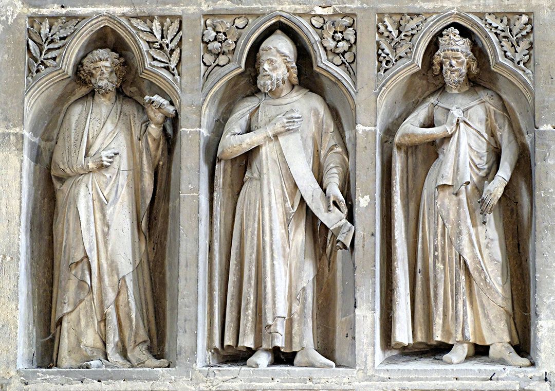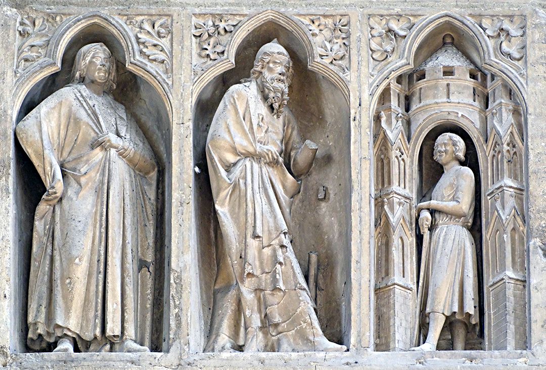 Le revers sculpté de la façade occidentale de la cathédrale de Reims daterait approximativement de 1260, le début de la construction de la cathédrale actuelle étant de 1211.